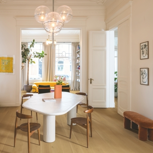 Prvá vodeoodolná a vodotesná drevená podlaha. Vychutnávajte si život plnými dúškami. Naše odolné drevené podlahy sú ako stvorené pre zábavu pri kúpaní s deťmi, večery s priateľmi aj hranie s domácimi maznáčikmi. Naviac vydržia dôkladné čistenie.